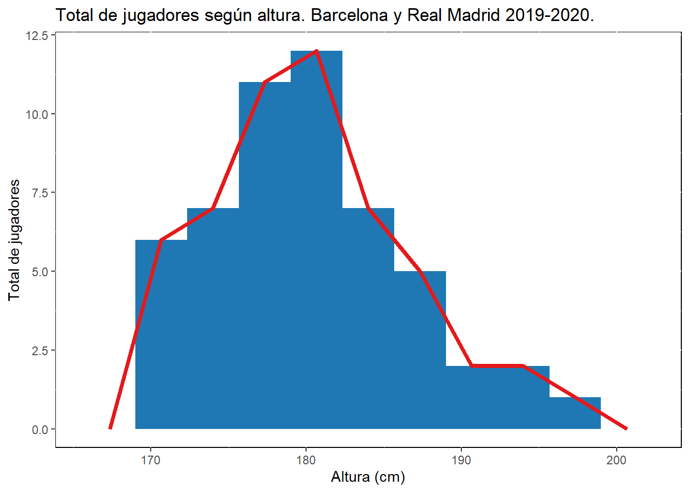 title = "Total de jugadores según altura. Barcelona y Real Madrid 2019-2020.")+